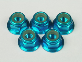 M4 Aluminum Flange Nylon Nut Light Blue (5 pcs)