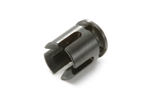This metal cup joint for the DB02's center drive shaft replaces the kit-standard plastic part to provide increased durability and power transmission efficiency.