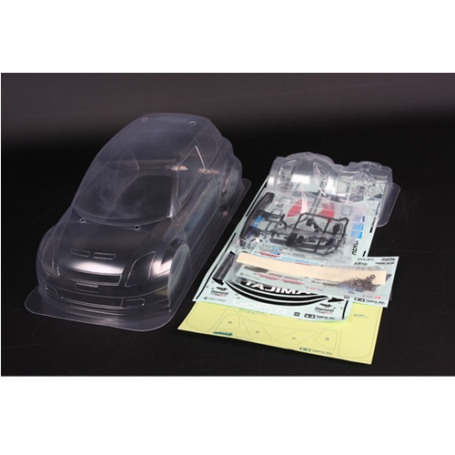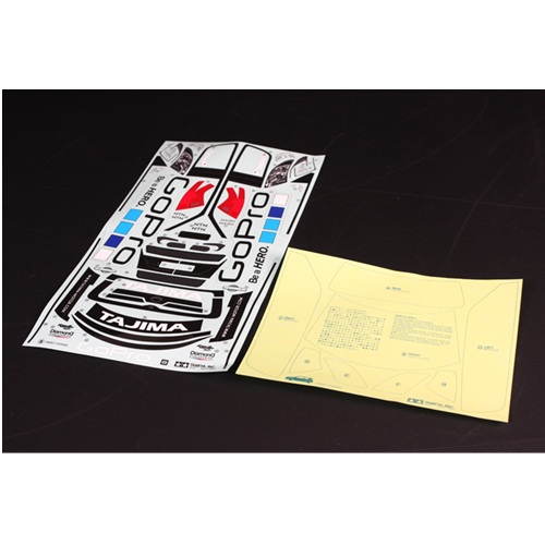 This is a clear polycarbonate body parts set of the GoPro Monster Sport Super Swift race car. It is made out of 1mm thick polycarbonate. The set includes masking seals for the windows and a sticker set to replicate the Go Pro Monster Sport Team livery.