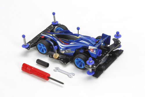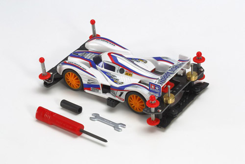 This starter pack is a great first purchase for those just getting into Mini 4WD, or for racers who want to experiment with already-tuned machines. The assembly kit of the popular Aero Avante Mini 4WD car is packaged with parts which suit the car to high-speed circuits, and the tools necessary to construct the model!