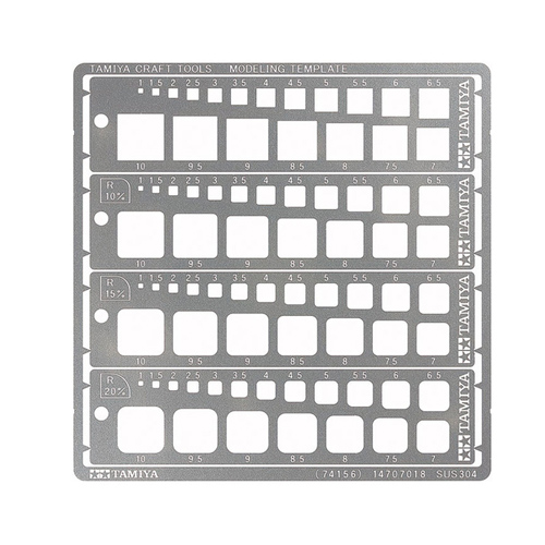 | Tamiya's engraving blades are a fine addition to any modeler's tool kit, allowing scribing of fine, precision lines. Now, you can use them to scribe curves and circles with ease thanks to this set of photo-etched stainless-steel template sheets!