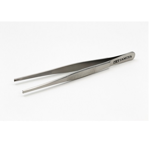 These angled tweezers are useful for handling small parts and adding decals to your models. The edges are rounded to prevent scratching. Made from stainless steel with a black cationic finish for long life.