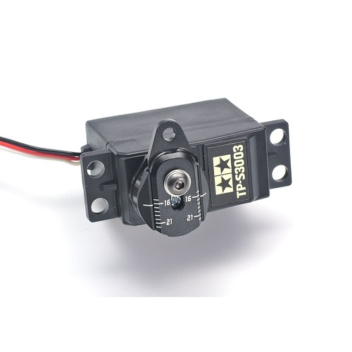 This Tamiya aluminum adjustable servo horn allows you to finely tune your racing cars chassis steering geometry. You will be able to tune the steering range by raising or lowering the height of the arm on the servo saver. - Servo Horn A, B & C components x1 each - Hi-Torque Servo Saver Spring (Large) x1 - Hi-Torque Servo Saver Springs (Short) x2 - Hi-Torque Servo Saver molded parts x1 - Allows adjustment of the gap between servo horn center and ball connector at 1mm increments between 15mm and 22mm. - Also acts as a servo saver, helping protect the servo in the event of crashes and impacts. - Small parts for attachment included. - Compatible with TA07, TB-05, TT-02, TT-02B, M-07 Concept, M-06, M-05, CC-01, GF-01 and G6-01* chassis cars.