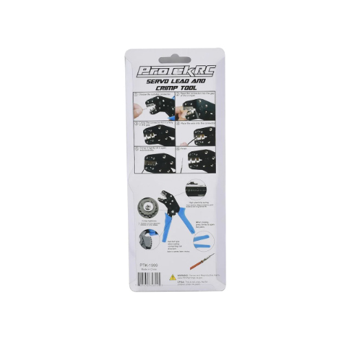 | The ProTek RC Servo Lead & Terminal Crimping Tool is the tool you need to make custom length signal wires for your ESCs, receiver batteries and servos. This tool safely secures the connector pins on wire sizes between 14 and 28awg, without damaging the pin or the wire. Simply strip a short length of the shielding off the wires, install the connector pin into the tool, insert the wire into the pin, and squeeze the tool to crimp the pin in place.