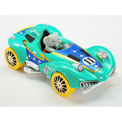 Meet the Elephant Racer! This Mini 4WD kit combines the adorable driver with the classic car body first used in the Panda Racer 2 model (Item 18092). The body and driver sit on top the cutting edge VZ chassis.