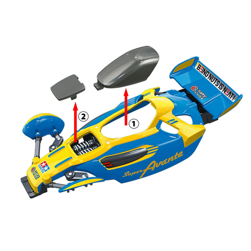 - The canopy is detachable and the one-piece driver figure is removable, so it is possible to attach Mini 4WD animal driver figures (not included, some figures require modification) using double-sided tape.