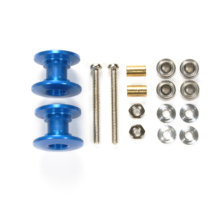 These are stylish green versions of the popular double aluminum rollers that provide smooth and stable cornering, with the smaller top roller supporting your Mini 4WD racer when it ‘leans’ through a corner section of the race track.