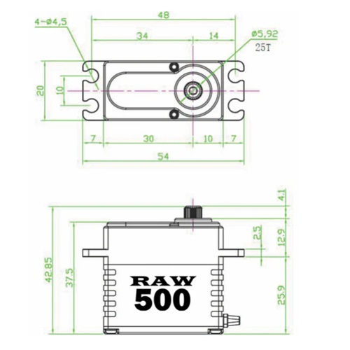 - Torque: 450oz @ 6v/ 500oz @7.4v/ 565oz @8.4v
