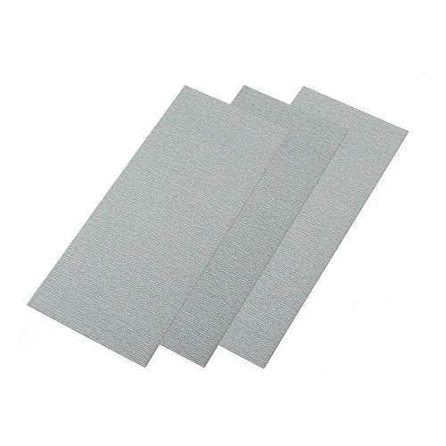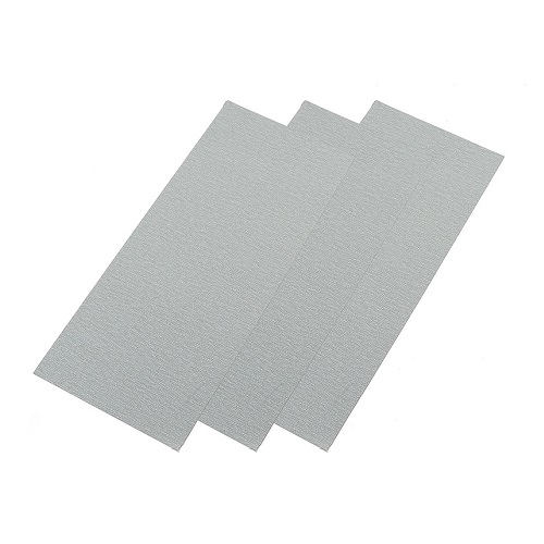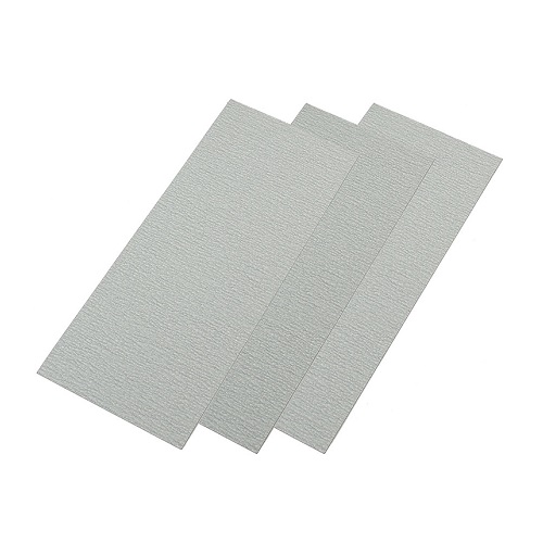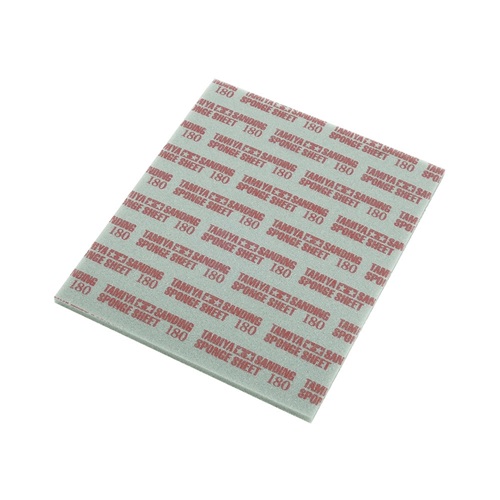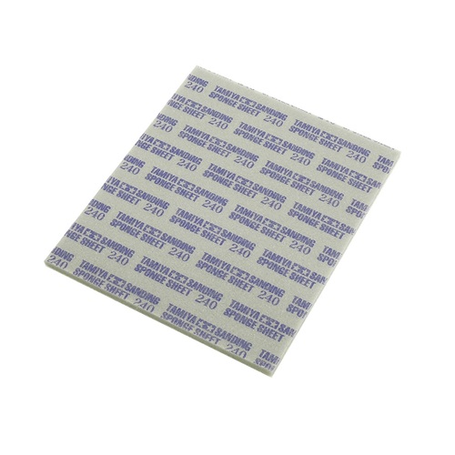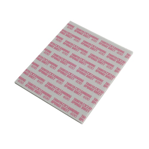 Attached to a flexible sponge base, the abrasive coat of this sanding sheet is well-suited for removing protrusions on plastic models and also finishing materials such as wood and metal. The sponge's flexibility allows even finishing of curved surfaces and hard-to-reach corners. This item can be easily cut into the desired shape/size using a modeling knife. Note: Suitable for wet sanding use.