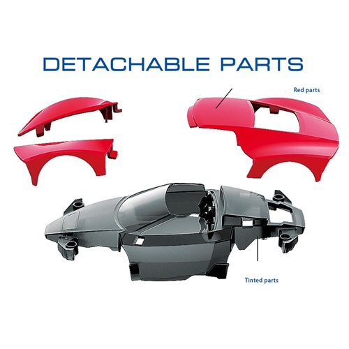 - Detachable fender and cowling parts are molded in red ABS plastic.