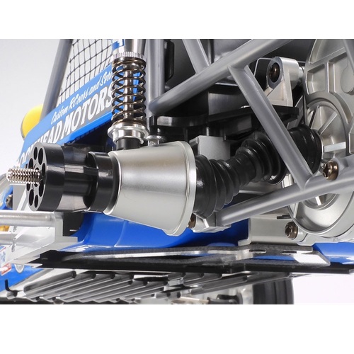- Durable and lightweight ABS box type frame is matched with a battery case which is compatible with modern power sources such as Tamiya Racing Packs and LF batteries.