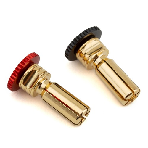 Installation is effortless thanks to the easy-grip thumb screws that allow quick tightening without tools. The ultra-low-profile design keeps wiring neat, while bold anodized colors and mirror-like chamfer detailing add a premium, custom look. Built to last, each plug features laser-engraved polarity markings and the authentic ProTek RC logo for easy identification — making these bullet plugs the ultimate combination of function, performance, and style. Once screwed down, the bullets lock in place for reliable connection during even the most demanding races.