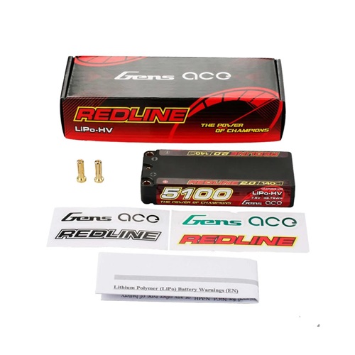 - (1) Redline 2.0 2S Shorty LiHV Battery 140C (7.6V/5100mAh) w/5mm Bullets