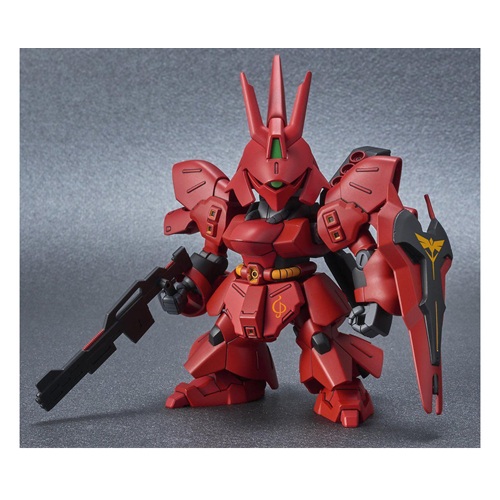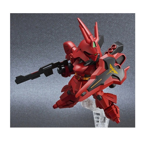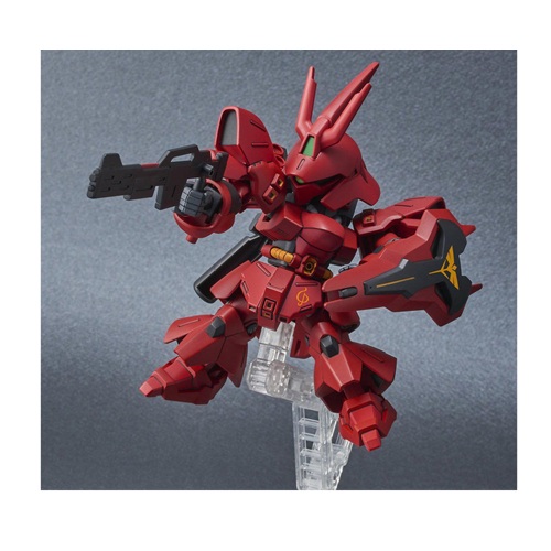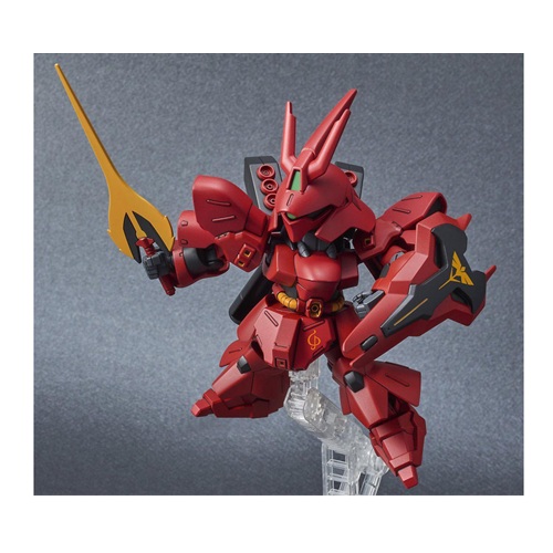 This is the Char's Counterattack Sazabi Gundam Action Figure Model Kit from Bandai Spirits. The new Ex Standard Sazabi kits are designed with multiple molded colors and limited articulation, allowing you to achieve the perfect pose for display. The kit includes foil marking stickers to add extra colors and markings, enhancing the visual appeal. Additionally, these EX Standard kits feature a new gimmick for added features and customization possibilities.