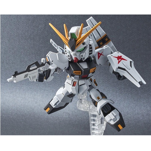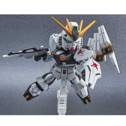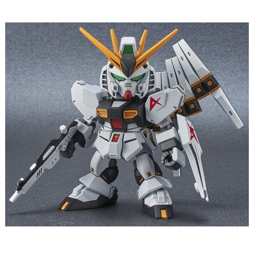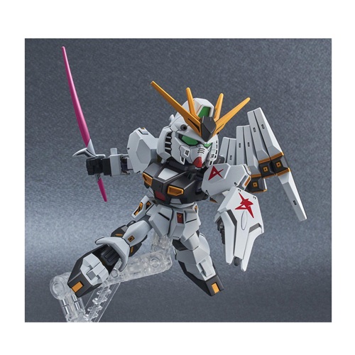 This is the Char's Counterattack Nu Gundam Action Figure Model Kit from Bandai Spirits. The new Ex Standard Nu kits are designed with multiple molded colors, allowing for limited articulation to achieve the perfect pose for display. Foil marking stickers are included to add extra colors and markings to enhance the kit's appearance. These EX Standard kits also introduce a new gimmick for added features and customization possibilities.