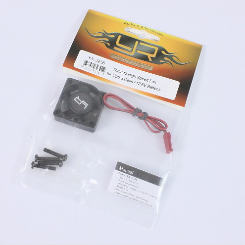 This is the high speed (#YA-0256) Tomado High Speed Fan for Lipo 3 Cells / 12.6V Batteries. It is designed to cool down your motors and ESC significantly.