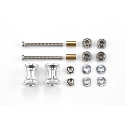 With the current Tamiya Mini 4WD racing regulations, only these double rollers count as one roller. 12mm diameter roller set in the upper position and the 13mm in the lower position, improves your stability greatly and also assists cornering ability.