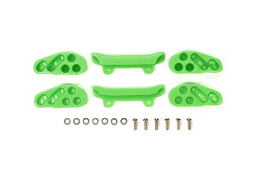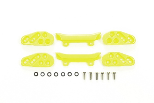 Mini 4WD users often equip their vehicles with front aluminum FRP plates for a wide roller setting. This enhancement often leads to user's vehicles getting stuck on the course fence. Tamiya designed this underguard to block the gap and improve your vehicles performance.