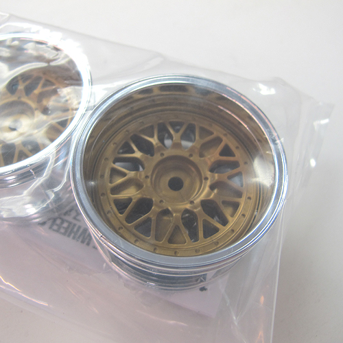 This is a two-piece mesh wheel set. The wheel rim itself is chrome plated while the mesh centerpiece is molded in gold.