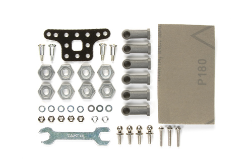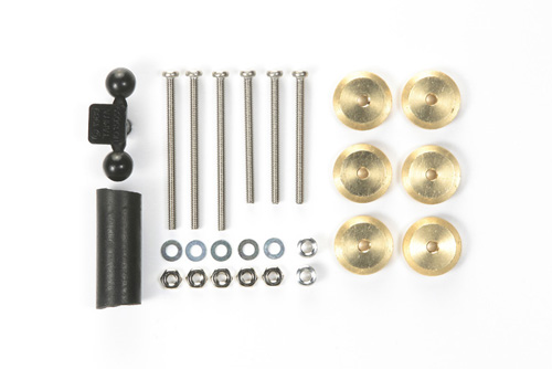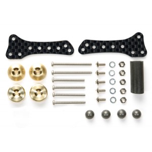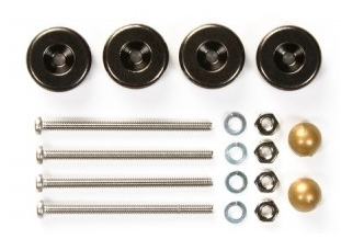 Mass dampers have become a staple modification for Mini 4WD machines and these items, which have square shaped cross-sections, will provide racers with another setting option. Not only can they be mounted onto the stays, they may also be cemented onto the chassis as fixed weights. Mass dampers influence pitch and attitude of the mini 4wd car during running.