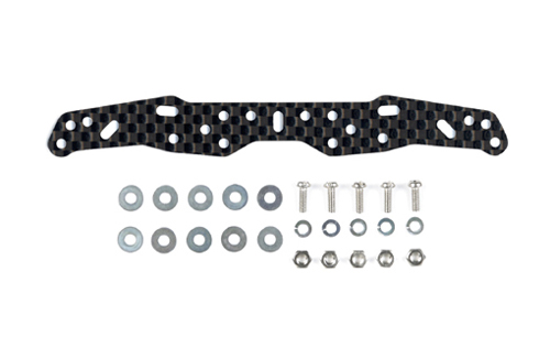 This new Rear Multi Roller Setting Stay has attachment holes to enable installation of 9mm, 13mm, or 19mm rollers in wide positions. Item contains extra holes to attach mass dampers and brake parts at most rearward positions to expand the setting possibilities.
